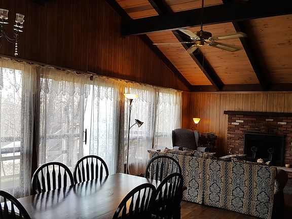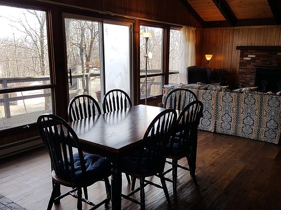 ESCAPE to the Pocono Mountains! Whether you are a writer, painter, skiier, mountainous adventure this home is for you!!! Not too large to take care and not too small to enjoy! This ranch home with 180 sq. ft. of decking, fireplace, wood beam ceilings and private cul-de-sac location in an amenity filled community. Hardwood floors in great room with pine knotted vaulted ceilings. dining. Low taxes!