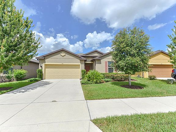 Active with Contract. Located in the desirable Trillium neighborhood. NO CDD fee's and a low monthly HOA that includes garbage removal & use of the Resort Style Cabana Community Pool & playground area. Trillium is just 1 mile from the Sun Coast Pkwy making it an easy commute to the Tampa Airport and Tampa Bay area. This sidewalk lined neighborhood is very family friendly. Inside prepared to be wowed. Clean lines and neutral colors in this very well-maintained home. Tile floors run through the living and wet areas of the home. The open living space is lovely with a bright atmosphere and tall ceilings. The lovely kitchen will delight your inner chef. Recessed lighting above, and tile floors below complimented by large cabinets, granite counters, stainless steel appliances, and a decorative tile backsplash. The master bedroom is very accommodating for large furniture. The master bath holds a large sink area, a walk-in closet, and a stand-up shower. Great closet space in the guest bedrooms and they are both a great size and carpeted for comfort. The guest bath is placed right between the bedrooms for easy access. A great covered patio on the back of the home for relaxing outside and plenty of room for the kids to play in the fenced in backyard. You will be impressed with this one!