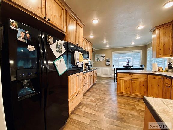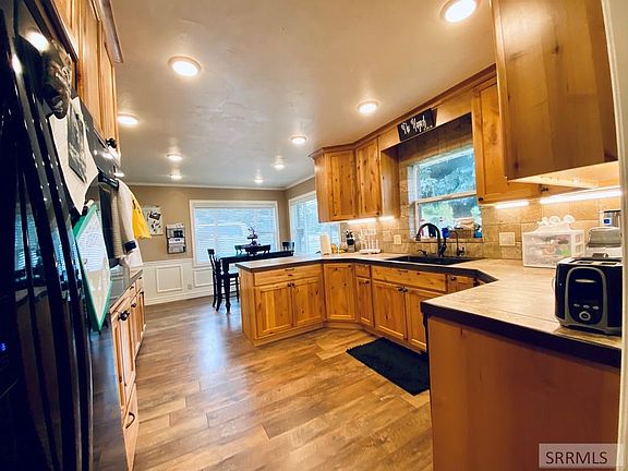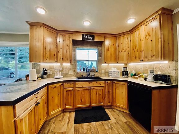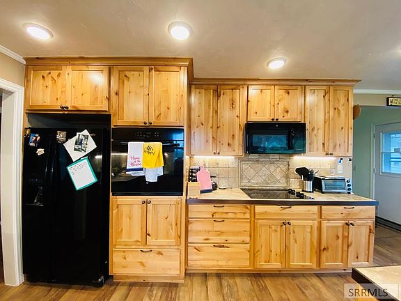 Adorable one level ranch in town on nearly 1/2 acre! This home has a large living room with two large windows adding bright natural light and a rock surround wood fireplace. Opposite the living room is a fully updated kitchen and dining area. The kitchen features custom cabinets with soft close doors and drawers and undermount lighting, full tile backsplash and sleek black appliances. The kitchen opens to a cozy dining area with matching laminate flooring and beautiful decorative trim. Each bedroom has ample closet space and windows opening to the beautiful back yard. The yard has been well maintained and features a patio area and mature lawn and trees.