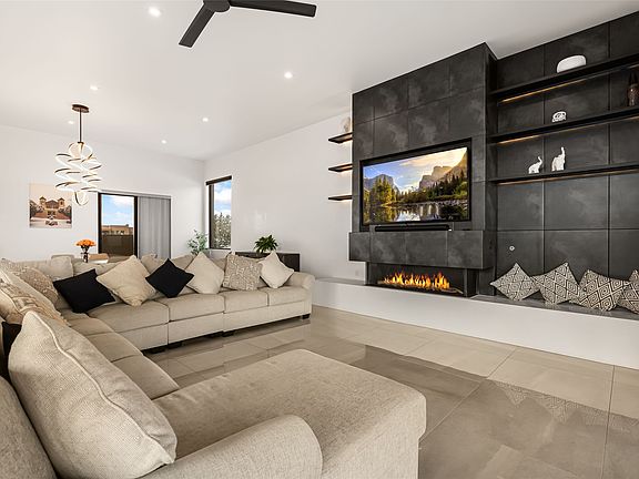 Stunning 3-bedroom custom-built home with awe-inspiring vistas of the Santa Fe’s cityscape and the Sangre de Cristo mountains. This 3,500+ sq. ft. Parade of Homes winner for the Award of Excellence (2023) features Boss Builders signature style and luxury finishes throughout. The architectural design respects the traditional historical vernacular of Santa Fe style while layering on a more contemporary interpretation with classic white marble flooring, smooth plaster walls, and crisp corners. Expertly sited on a 1-acre lot, the home offers sweeping 360-degree vistas, with multiple large outdoor spaces that include two covered portals and a rooftop deck (with elevator). Entry opens to a spacious great room with a sleek gas fireplace that flows into a dining area, bar and a walk-out patio with a gas fire pit and panoramic mountain views. Dramatic open gourmet kitchen is appointed with top-of-the-line Sub-Zero and Wolf appliances, black marble counter tops, crisp white cabinetry and a grand center island with room to seat four. With 3 bedrooms, 3 full bathrooms and a flexible studio or media room, the home was designed to adapt to a variety of lifestyles. The primary suite is a private retreat, featuring a corner pocketing slider to its own patio, a spa-like bath with soaking tub, double-sided fireplace, walk-in shower, and generous closet space. Laundry room with sink and plentiful cabinetry. 3 -car garage. Excellent north side location just minutes from the Santa Fe Plaza, Canyon Road and Museum Hill.