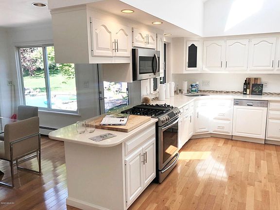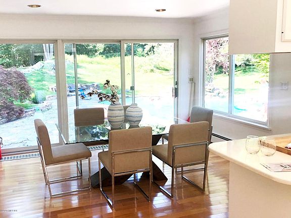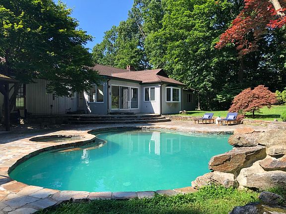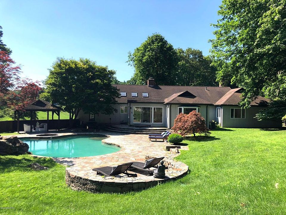 Bright and inviting contemporary ranch on 5.88 park like acres of rolling wide open land. Make this your primary residence or weekend house. The interior offers an open floor plan with a large kitchen, cathedral ceiling and breakfast room, all of which look out to the sprawling stone terrace and heated pool with attached jacuzzi. The master bedroom has a luxurious bath with separate tub and shower. There is a formal dining room and large living room with fireplace. All which lead to a wet bar and large family room with a wood burning stove, built-in bookcases and recessed lighting.Plus screened porch and oversize 2 car garage.The interior has just been completely painted with neutrals colors. The house is in immaculate condition. Lawn care and pool maintenance included.