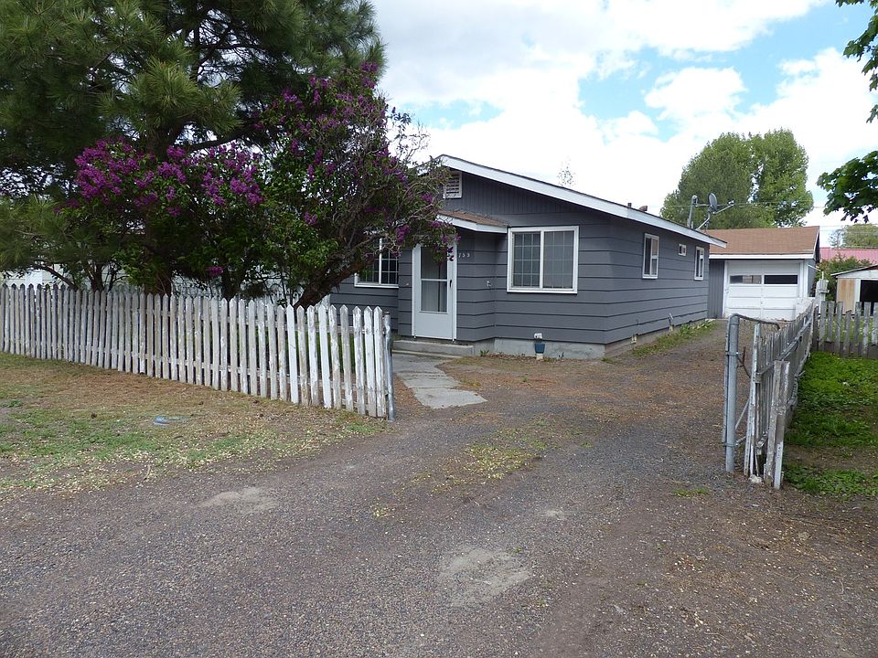 Great home for the first time home buyer or someone looking to downsize. The home has had many upgrades done to it over the past few years. Brand new metal roof. Newer kitchen, bathroom, floor coverings thru out & vinyl windows.  The oversized single care garage has work benches and an additional tool room. Nice covered patio off of the garage. Concrete walkways. Fully fenced yard. It has been used as a rental with a good rental history. The most current rents are $700 per month. ADDRESS:    755 S. Kearney, Burns                 TAXES:    $796.30           FINANCING:   Cash or bank financing   YEAR BUILT:   1964 SQ. FT.:    792 - per county records     LOT SIZE:   .10 acre lot HEAT SOURCE:   Laser oil stove & electric wall heat              BEDROOMS:   2 BATHROOMS:  1 full                                        APPLIANCES:   Range, refrigerator & B/I dishwasher GARAGE:  Detached single