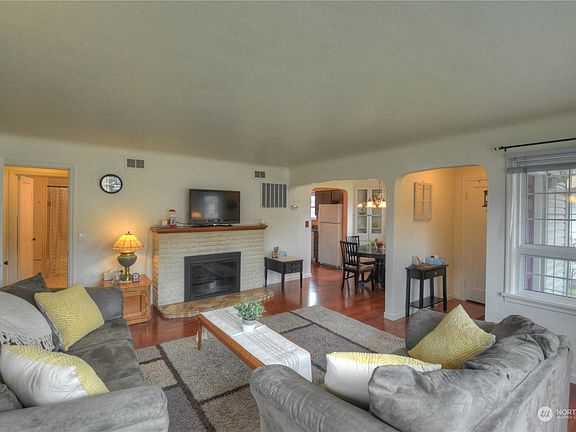 Sweet 4 bedroom bungalow with reading/play nook and additional flex space/family room! Lovely lot with garden beds and alley access. Updated kitchen, hard surface floors throughout and wood floors under carpet in bedrooms. Cute built-ins in dining area, cozy fireplace in living room. French doors from flex space to backyard. 2 bedrooms and full bath on main floor, 2 bedrooms, reading nook and 1/2 bath on upper floor. Big utility/pantry/storage space. Deck overlooks the yard. Heat pump for heat and air conditioning! Easy freeway access and downtown location. Detached garage on alley.