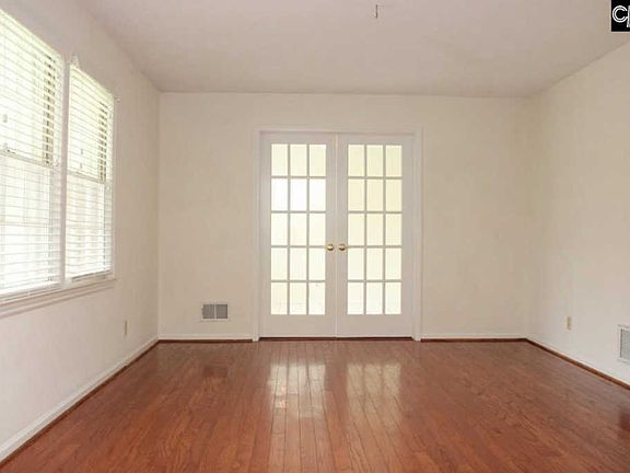 All brick 3bd/2ba Ranch in established true Whitehall neighborhood w/2 car garage & fantastic floorplan! Spacious front porch welcomes you into entryway w/gleaming prefinished wood flooring flowing through formal living & family rooms. Formal living w/bright windows leads through elegant french doors into formal dining w/tile flooring. Tile floors extends into eat-in-kitchen w/granite countertops, tile backsplash, crisp crown molding & refrigerator that stays! Relaxing family room w/prefinished wood flooring, crown molding, & stunning fireplace. Large Master bedroom w/ceiling fan, his & her closets, private bath with tile flooring & tiled shower. Good sized secondary bedrooms with ceiling fans share hall bath w/tile floor, oversized double vanity, tiled tub-shower. Fully fenced large backyard features two large storage sheds, large back patio perfect for entertaining. Laundry/Mudroom accessible from kitchen & backyard. Convenient to I-26, Harbison Shopping, & downtown Columbia! Termite bond in place. 2-10 Home warranty offered!