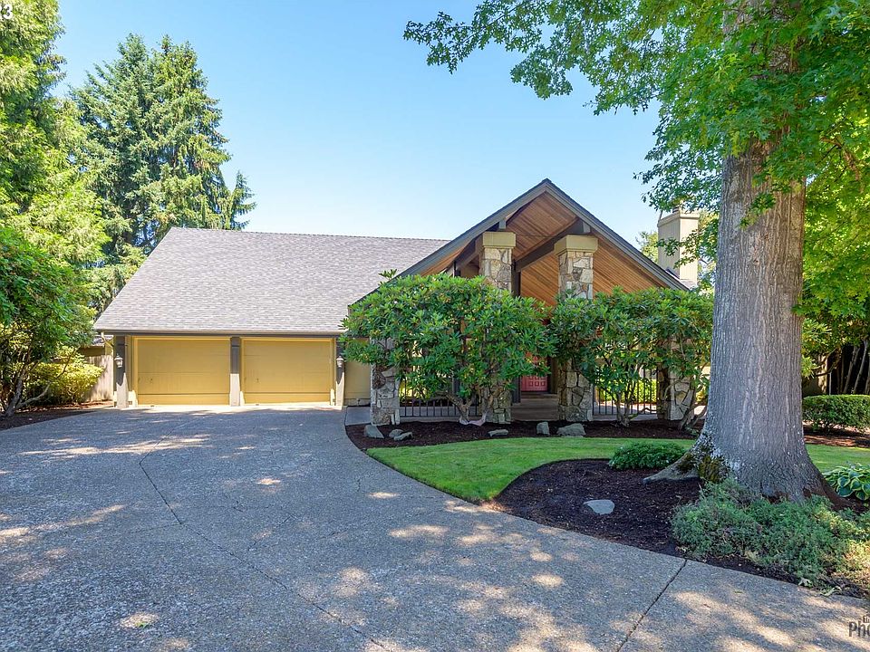 This expansive home has abundant space for you in the established Spyglass neighborhood. A welcoming porte cochere, beautiful wood floors, built-ins and traditional finishes are found throughout. The primary suite, informal/formal dining & living and designated laundry with chute are on the main level. An additional suite, three bedrooms, bathroom, bonus room and storage are upstairs. The mature landscape surrounds the private yard with multiple patios, hot tub and storage sheds. This premium locations also offers a quick pedestrian passage to Oakway Center via the golf course access. Virtually staged.