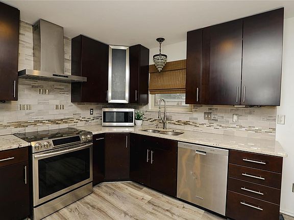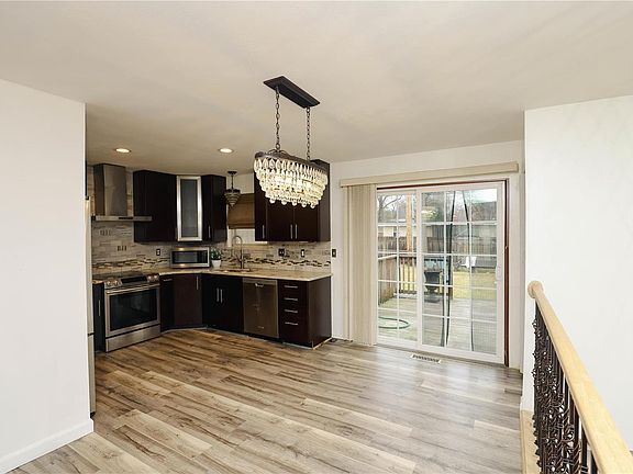Welcome Home! This ranch features just under 1,400 sf on main level with 3 bedrooms, 2 bath and 2 car garage. Updated kitchen features newer stainless steel appliances that are staying with the home (as-is). The kitchen walks out to deck and large fenced in back yard. Living room, hall, and bedrooms have refreshed hardwood flooring. The lower level is finished and includes a bonus room and an entertainment room that features wall-mount electric fireplace. W/D (as is) stays with the home.