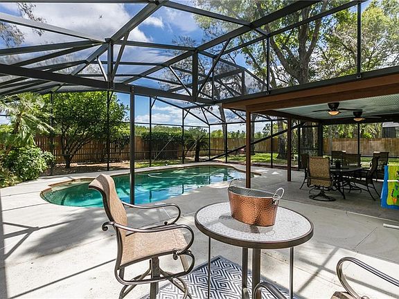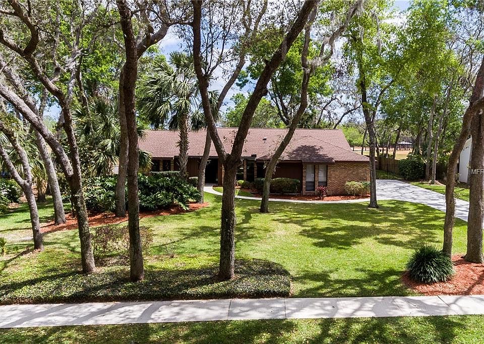 Serene Tuscawilla Pool Home with no Backyard Neighbors. This brick home exterior set amongst the oak trees and backs up to Trotwood Park is a Must on your list! Country Club Community and home of the winning Tiger Sharks swim team. Located on one of the most beautiful tree lined streets in Tuscawilla with a tranquil vibe because it is time to exhale and enjoy your new home! Your own private entrance to the park through your wooden gate from your backyard. Entering the foyer, the formal dining is open to the Family room with high ceilings and exposed beams looking out to the crystal clear pool. Kitchen has been tastefully painted to brighten your morning with your coffee. Open the double doors to your Master suite and you will love the Florida sunshine from your French Garden in the Master Bathroom. Volume ceilings in the Master Bedroom with walk-in closet and plenty of room for a sitting area. The Hall bath is completely renovated in this split floor plan. Poolside you will love entertaining and having meals with your family as well as celebrating those very festive birthdays. Also, the owners have had the exterior plumbed for future outside kitchen, should you choose. All ceilings updated with knockdown, New Irrigations system and is sourced with reclaimed water, so no high water bills for you! New Driveway. Side garage entrance with the interior appointed with storage cabinets to easily tuck away all your "man cave" items. Call today for your private showing! Home Sweet Home!