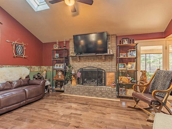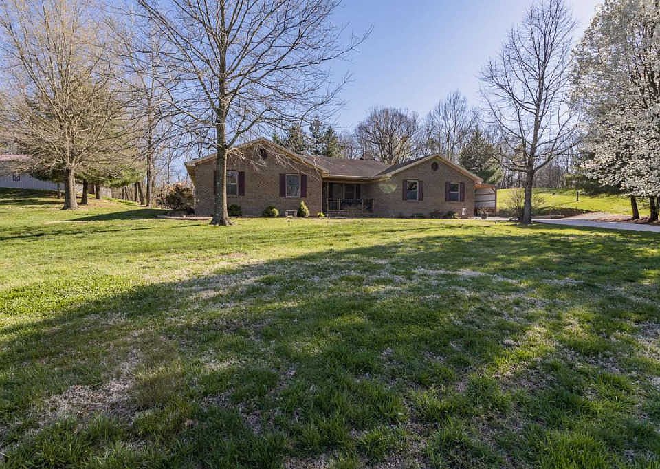 Awesome country home on 10 acres w/lake and huge detached garage! All brick ranch w/beautiful hickory flooring throughout! Large living room with soaring cathedral ceiling with skylights allowing lots of natural light. Gas insert fireplace w/large brick hearth with tv mounted above. Beautiful open kitchen and nook area with lots of cabinets, counterspace, and moveable island. The owner's bedroom measures 15x15 and easily accommodates a king sized bed. Don't miss the unique walkin closet door! The private owner's bathroom has a custom vanity w/copper sink and a large shower. The mud room between the house and garage is perfect for coming in from yard work, hunting, fishing, etc. The glass porch overlooks the backyard and would make a perfect work from home environment **High speed internet available** The detached garage (not a pole barn) is 28x56 with a 7,000 pound car lift, separated rooms, work area, and storage loft. Also there is a lien to, perfect for camper storage, that has a 30 amp RV hookup. There is also a horse barn w/electric & water. The lake is stocked and is great for fishing! Lots of turkey and deer seen on property. AHS home warranty included.
