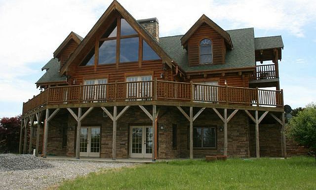 AMAZING HOME custom all the way, solar, generator, Post and Beam and Log Construction, no drywall or tile or carpet in the home all rock and wood, lots of windows enormous fireplaces on two levels 3 master suites, executive rental history, furnished and decorated, bring your clothes and move right in. A million dollar home with a million dollar view! A MUST SEE
