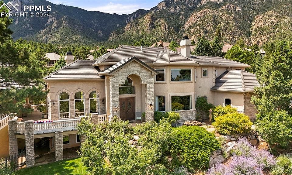 Restore and relax in this remarkable custom-built home located in the coveted Broadmoor Resort gated Community, offering 24-hour security with live guards. No detail overlooked, with the manicured front yard, to the backyard pavilion, with fireplace and outdoor kitchen, overlooking the pool, and a real playhouse! As you enter this fantastic home you will be amazed with the soaring ceilings, architectural moldings around massive windows and doors, walnut floors and stunning staircase with custom iron railing. The elegant formal living room boasts a wall of windows opening to the pavilion and pool. The living room flows into the formal dining room which opens to a chef's delight, gourmet kitchen. The kitchen offers an abundance of rustic cherry cabinetry and a massive slab granite center island. The kitchen overlooks a delightful family room w/ a cozy fireplace & wonderful city views. From the kitchen & dining area, you can slip out to the spectacular wrap-around concrete patio which makes its way to a private pool & hot tub. On the other side of the kitchen, you will find a study with built-ins and a large butler's pantry, just off the garage. Upstairs are 2 lovely bedrooms with a secret "mouse hole” access between the bedrooms that attaches to a dream playroom. The master was enlarged to encompass the breathtaking city view. Work from home in a separate study complete with fireplace and wet bar. The 5 piece master bath overlooks the mountains with heated Travertine floors, a deep soaking tub, slab granite counters with 2 sinks, and a walk-in shower with dual shower heads & mosaic tile accents. The perfect entertainer’s lower level game area opens to the fun, state-of-the-art, home theater w/ stadium seating. The attached sunroom includes a bathroom that opens to the pool. Also, next to the game room, is a spacious workout room alongside a ballet room/bedroom and 3/4bath. There is another bedroom with walk in closets and sitting area great for guests. A rare find!