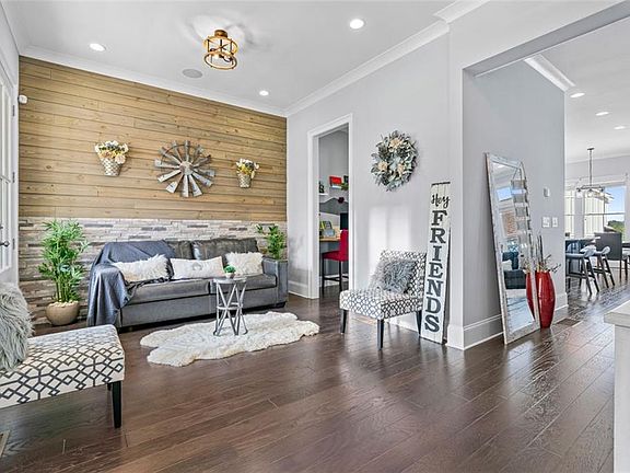 Youve found the one!! Can someone just say WOW, to the unobstructed picturesque view of Greens Pond from the family room & the spacious master. Oversized wrap around porches off the main living space and secondary bedrooms. This 5 bedroom, 4 full bathroom home offers a full guest suite on main. Gorgeous natural light. Neutral paint throughout. Built ins flank the fireplace in open family room. Kitchen includes white cabinets to ceiling. Quartz countertops, walk in pantry with custom built in wood shelving. Custom built river table off kitchen for multipurpose use. Stone accent wall graces the family room and staircase heading to the terrace level. Master up with beautiful reclaimed wood accent wall, large closet with custom wood built ins. Ensuite includes frameless shower, separate tub and his and her vanities. Terrace level features full bedroom and bathroom, as well as multipurpose flex space. Added bonus and a hot commodity, full 3 car garage with additional storage space and parking pad for 3 additional cars!! Vickery amenities are second to none including pool, tennis, walking trails, community greenspace, basketball court, playground and 2 ponds. Top all of this off with top performing Forsyth County Schools! Kitchen refrigerator, washer, dryer and swings remain.