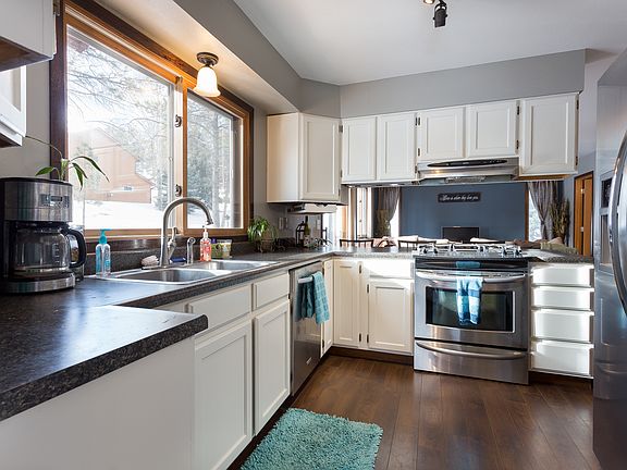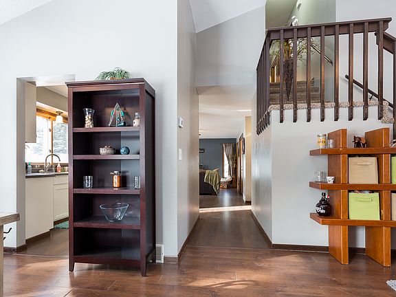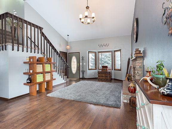 Beautifully maintained 1.5 story home on over a half acre lot! *Features like soaring vaulted ceilings, engineered hardwood floors, 2fireplaces, updated bathrooms, main floor laundry, brand new roof, newer furnace and more make this home a must see! *5 bedroomsand 3.5 bathrooms *Smart layout where the living room flows into the formal dining room and gives easy access to the walk-throughkitchen *Updated kitchen has a stainless steel appliance suite with gas stove, breakfast bar seating and a stand up pantry *Upper levelmaster suite with his and hers closets and an updated ensuite bathroom with custom tile shower and rain shower head *Basement has arec room, 2 bedrooms with egress windows, 1 bathroom, and a cozy office nook *Attached 2 car garage with storage *2-tier back deckwith outdoor speakers and built in hot tub area *Amazing .57 acre lot with mature pine and evergreen trees and tasteful landscaping withrock edging. Listed by Shauna Sheets, KWBH, 605-545-5430.
