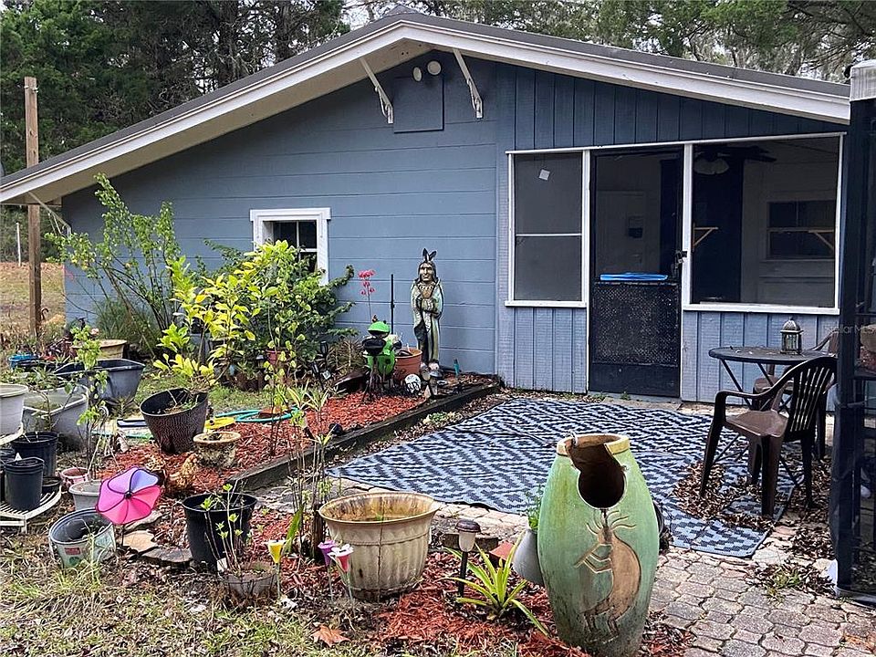 Create the perfect mini farm here. This 4.85 acres is a must see with a desirable location in Newberry of Levy county. Enter property through this inviting iron gate with scenic drive through this wooded lot. Main home is 1 bedroom and 1 bath with Ceramic tile through out. Kitchen offers refrigerator, stove, garbage disposal, and lots of counter space. Open living room with fireplace. Bathroom features unique sunken tiled shower. Many additional property features include: full guest cottage with full bath, barn with ample storage, work barn with full office and extra storage, and pole barn. Bring the chickens to their chicken coop with a cooling ventilation. Grow your garden here with a sprinkler system and plumbing through out property. Out buildings have electricity and water. 220 watts in barn for RV. After all the fun on the farm enjoy sitting pool side next to the relaxing inground pool on those hot summer days. Excellennt property with an attractive price. Come see this great property today.