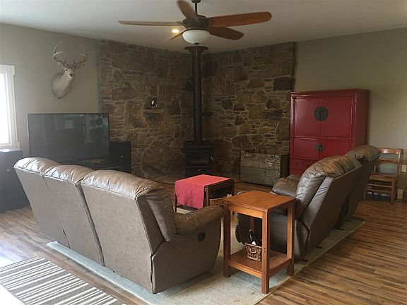This 3BR/2BA brick ranch has a lot to offer it's new owners. This home has had a LOT of updates and upgrades (see list below). Upon entering you will find a spacious family room with wood stove, hardwood laminate flooring and a nook with two built in desks. The master suite has a completely remodeled bathroom including heated tile flooring and a 5 ft walk in shower. The living room just off of the recently remodeled kitchen offers a beautiful fireplace with a high efficiency direct vent gas fireplace insert. Enjoy beautiful country sunsets and wildlife on 5.58 acres of mostly flat open field that yields about 11 round bales. Plenty of garden space along with pear trees, persimmon trees and blackberry bushes. Outside are three concrete patios, 2 car detached garage, basketball goal, woodshed (wood not included) and owned LP tank. Come see this beautiful property and all it has to offer. List of updates/upgrades: In 2017 new bedroom windows were installed. In 2014 the family room was upgraded with tile/hardwood laminate flooring, wood stove, recessed lighting and a den w/two built in desks. In 2017 new hardwood laminate was installed in the dining room and hall. High efficiency gas fireplace insert in the living room fireplace. New sliding glass door. In 2015 they installed a new central heating and air system as well as an on demand gas water heater. In 2013 they put in an entirely new kitchen. In 2011 both bathrooms received a remodel including new water lines. New interior doors. Encapsulated crawlspace. New gravel on driveway. Fresh Insulation blown in attic this week. New roof in 2007. The dining room had a wood stove in it, owners have removed the wood stove as they did not want to include it in the sale. They have left the pipe/flue in case new owners would like to put one there, if buyers would like the flue removed and ceiling patched seller will do so.
