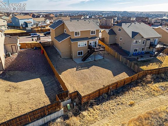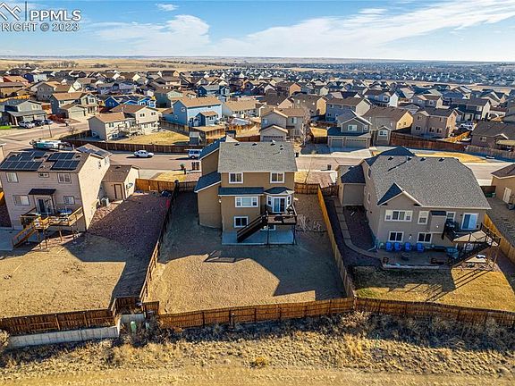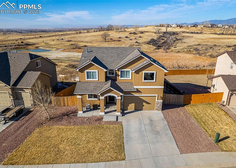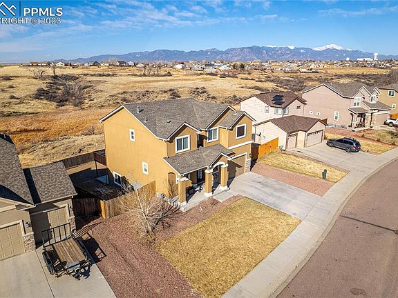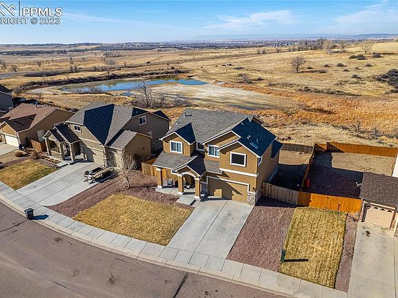 Enjoy Some Relaxation From Your Own Patio Chair This Summer, With Sweeping Mountain Views And Spectacular Sunsets (And With The Absence Of Houses Staring Back At You). This Attractive 4 BR, 3 BR, 3-Car Tandem Garage, Stucco And Stone Home Is Oh So Functional And Possesses A Setting That Is Far From Ordinary. The Welcoming Front Porch Offers Yet Another Delightful Way To Spend A Summer Evening. The Two-Story Entry With Wrought Iron Balusters At Loft Above Give This Home A Modern Feel, While The Family-Friendly Layout Makes For Convenient Everyday Living. The Kitchen Boasts A Large Island, Great For Both Meal Prep And Meals On The Run. Generous Cabinets With 42” Uppers, Granite Countertops, Stainless Steel GE Appliances, And Walk-In Pantry Make This A Dream Space. Living Room Features Handsome Fireplace With Stone Surround And Wood Accents. Flex Space Off Of Entry Can Be Used As Office, Home School Class Room, Music Room, Or You Name It. Durable Luxury Vinyl Plank Floors Extend Throughout Main Level. Luxurious Owner's Suite Includes Spa-Like Bath With Granite Vanity And Large Walk-In Closet. Three Additional Generously-Sized Bedrooms, Two With Walk-In Closets. Upper-Level Laundry, So No More Lugging Clothes Up And Down The Stairs! Unfinished Walk-Out Basement Provides Tons Of Storage Space And Room For Future Expansion. Over-Sized 3-Car Tandem Garage Accommodates Large Trucks, Toys And/Or Workshop. Ring Doorbell & Wireless Alarm System Included. Landscaped Front Yard With Fenced Backyard Ready For Your New Design. Great Location Just 4 Miles Off I-25 And Mesa Ridge Pkwy With Neighborhood Park And Close Proximity To Shopping, Dining, Entertainment Venues, As Well As Ft Carson, Peterson AFB, Schriever AFB, and NORAD.