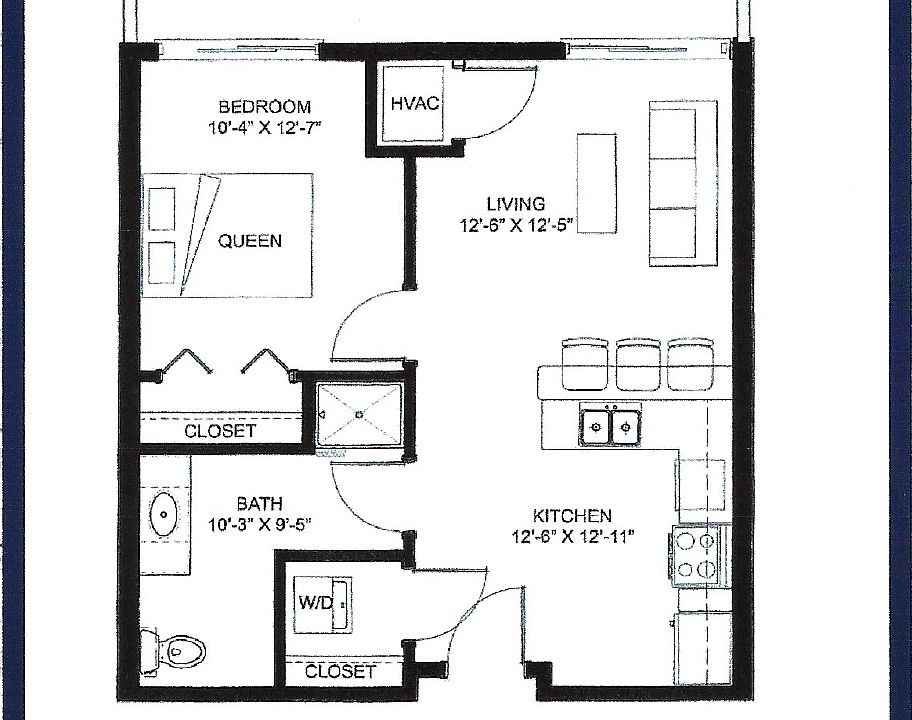 Our fabulous One Bedroom apartments included all stainless steel appliances and a washer & dryer. Quartz counters through out kitchen with premium cabinetry. You will enjoy our Open, Modern floor plan with 9' ceiling and wood blinds.