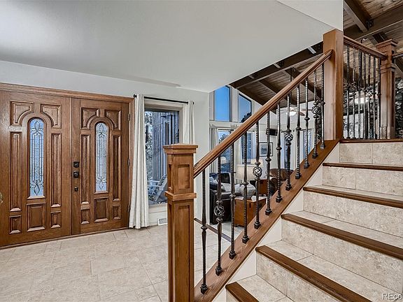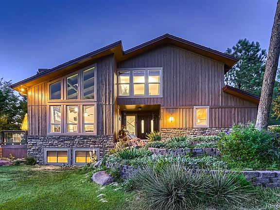 Gorgeous & Timeless Pinery Custom Home Built By Renowned Colorado Builder Bill Wall. 4 Bed, 4 Bath Flowing Beauty on Nearly a Half an Acre Treed Lot w/ Custom Rock Outcropping & Backing to Open Space Absolutely Exudes Pride of Ownership. Awesome Floor Plan with Vaulted Airy Great Room w/ Views of Pikes Peak. New Tile Floors, Tongue & Groove Stain Grade Ceiling Adorned w/ Custom Stain Grade Beams & Warmed by Floor to Ceiling Moss Rock Wood Burning Fireplace. Super Striking & Inviting 8' x 10' Foyer w/ Custom Tile Flooring w/ Stain Grade Hardwood Nosings Accentuated by the Custom Iron Railing w/ Bird Cages & Stain Grade Cap Rail & Newel Posts. High End Completely Remodeled Kitchen w/ KitchenAid Appliances, JennAir Cooktop & More! Granite Counters w/ Ogee Edge Detail, Custom Stain Grade Cabinets w/ Dove Tail Drawers & Crown Molding. Multiple Outdoor Living Spaces Including a 12' x 24' TimberTech Deck on Side Yard w/ Views of Pikes Peak & Surrounded by Mature Trees & Concrete Patio Off Dining & Kitchen Perfect for Grilling in the Serene, Xeriscaped Low Maintenance Backyard Teaming w/ Deer & Wildlife. Complete w/ InvisiFence w/ 2 Dog Collars. Private Master Bedroom w/ Spacious 5 Piece Remodeled Master Bath & Walk-In His & Hers Closet. Great Secondary Bedrooms w/ Dual Vanity Full Hall Bath. Inviting, Light & Bright Garden Level Sunken Basement Family Room w/ Another Wood Burning Fireplace Adorned w/ Floor to Ceiling Brick & Large Brick Hearth. Great Storage! Upgrades Include: Brand New Garage Door from Ankmar Installed 8/17/23. Gorgeous Cultured Stone Wrapped Around Home Installed in '20. Newer Super High End Milgard Windows. Brand New Architectural Shingle Roof w/ Leaf Shield for Gutters. New Exterior Sherwin Williams President Paint 1 Year New. Newer TimberTech Deck ('17). New Carrier HVAC in '21. New Sewer Line in '19. Close to Parker, Franktown, Castle Rock, Shopping Dining, Hiking, Biking, Everything You Need is Right Here! Great House! Come & Get It!