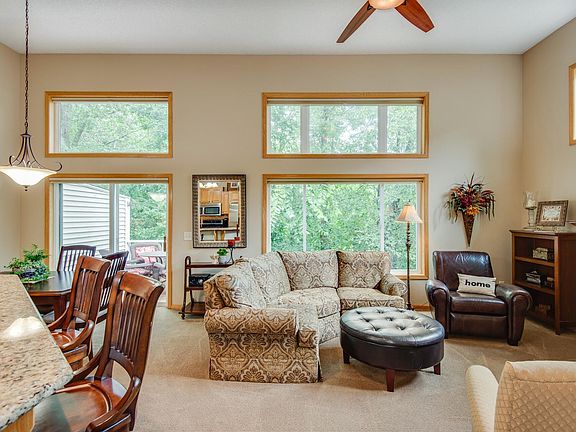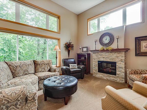 Welcome home to this beautiful end unit walk-out townhome on a pond lot. This meticulously maintained townhome boasts an open floor plan, vaulted ceilings and an abundance of natural light with plenty of windows throughout. Upgraded finishes in this unit include hickory flooring, granite countertops, Carrara marble, stainless steel appliances, an electric fireplace with a stacked stone surround and tile floors in all of the bathrooms. Enjoy the maintenance-free deck with the privacy of the wooded backyard! Conveniently located close to shopping, restaurants, schools & more, you're not going to want to miss this one!