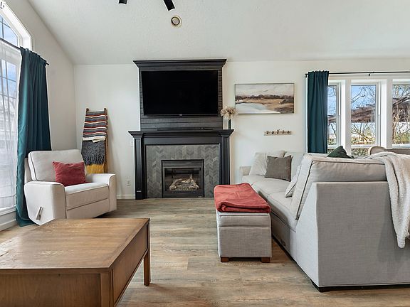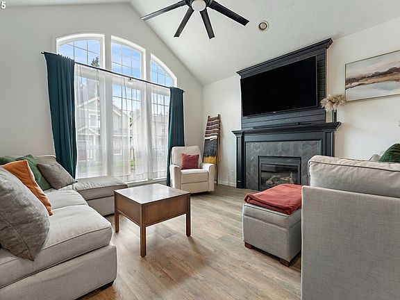 Experience the best of modern living in this contemporary home featuring a vaulted great room with large windows flooding the space with natural light. The inviting gas fireplace, complemented by custom tile, creates a warm ambiance perfect for gatherings. Enjoy the elegance of new luxury vinyl flooring throughout, enhancing both style and durability. The primary bedroom suite, conveniently located on the main level, boasts a luxurious soaking tub, a walk-in shower, and dual sinks, providing a serene retreat after a long day. The heart of the home is the spacious kitchen, lined with cabinets for storage, a large island, new stainless steel appliances, and gas cooking. Step outside to the private fenced backyard, with a covered patio and charming side latticed area that is perfect for entertaining friends and family. Easy potential to add RV parking to side of home. Located centrally near shopping and easy freeway access, this home seamlessly combines comfort, style, and functionality, making it an ideal choice for those seeking a sophisticated lifestyle.