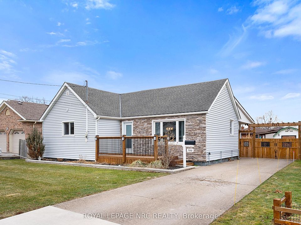 Welcome to 7552 Dorchester Road, a charming and thoughtfully maintained bungalow in the heart of Niagara Falls, with quick access to the QEW and close to the new hospital, and all amenities. This 2-bedroom, 1-bathroom home offers 950 square feet of well-used living space, perfect for first-time buyers, downsizers, or investors looking for a move-in-ready property. Hardwood flooring flows through the main living areas, complemented by fresh paint and tasteful décor throughout. The living room is cozy and intimate, and the home truly shines in its spacious primary bedroom and generous kitchen and dining area, creating a comfortable balance of function and charm. The kitchen, shows very well and offers ample counter space, making it an ideal work area for everyday cooking or entertaining. The updated bathroom features a double vanity, modern tile work, and stylish flooring. At the back of the home, a versatile mudroom provides pantry space, storage, and a practical entryway and allows you to step outside to discover a large covered porch and expansive deck, perfectly connected to the kitchen and ideal for BBQs, hosting guests, or relaxing while enjoying the private, oversized backyard. The yard also includes a large shed that has full power and can used as a small shop and functions well for storage with excellent potential for future customization. There is plenty of space for a large garage or shop where the shed currently sits. A cute, well-kept bungalow with great outdoor space and plenty of character, 7552 Dorchester Rd is a fantastic opportunity to enjoy comfortable living in a desirable Niagara Falls location.