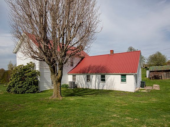 Circa 1890 farmhouse with lots of original features inside. Home has original woodwork and hardwood floors inside. First floor features spacious living room with gas propane freestanding heater, dining room, kitchen with lots of cabinets. and first floor bedroom. Second floor has two large bedrooms and loft area. This home is heated and cooled with 2 heat pumps to knock off the extra chill there is another gas propane freestanding heater in the kitchen. This home has a metal roof and insulated windows. Numerous buildings on property include: block dairy, original living quarters, and storage building. The property is serviced by a private well and septic. Internet is cable high speed. Very level yard.