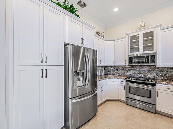 Fabulous lakefront,newly remodeled kitchen & Owners Bathroom,quartzite&porcelain! White wood shaker cabinets,gorgeous counter/backsplash, all tile throughout,completely enlarged screen lanai views the lake from everywhere! FULL HOUSE AUTO GENERATOR & ACCORDIAN SHUTTERS make this home storm ready! Full home water filtration system! Pristine! Walk to clubhouse,restaurant,6 pickleball crts, 10 tennis crts ,3 bocce ball crts,basketball putting green, tropical social pool,lap,resistance pools, indoor racquetbal&whirlpool, spa, sauna, steam,salon, full time tennis pro&shop,full time social director, shows, cards, dine inside or out at the Bistro. Premier Valencia 55+ Lifestyle community! Pride of ownership!Country club living with no equity or club dues!Community amenities are amazing! LOVE IT!