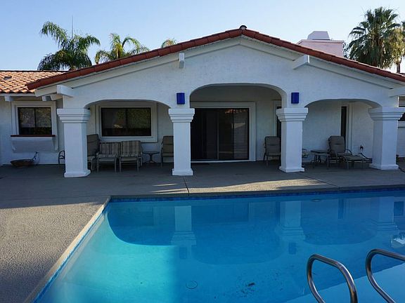 Available for Long Term Rental (or Seasonal or Monthly Lease.) This currently unfurnished home is located on a large South-Facing corner lot in the very desirable community of Indian Wells. A private gated courtyard leads to the main house featuring a sizable Master Suite with a large walk-in closet, remodeled Master bath plus a nice separation from the guest bedroom. The third bedroom is a media room but is currently used as 3rd main house bedroom, built-in closets are already in place. Living room offers a warm cozy fireplace and a wall-sized TV. Cooks kitchen complete with sit down counter, great storage space plus Southern Mountain views (Awesome view of Eisenhower Peak). Large outdoor living space with built in BBQ, entertainment bar, pool, spa plus a Fantastic detached Casita with 1 bedroom, 2 baths, living room with sleeper sofa and kitchenette space plus a separate laundry from the main house laundry. The separate casita allows for friends/family visitors or multi-generational living. $5750 per month (for the entire property) with 12-month lease. Other options TBD. Owner pays Pool and Gardener. No smoking. Small dog or cat OK. Currently being renovated with new floors, paint, kitchen, and appliances being installed. It will look new for the next occupant. Owner pays for gardener and pool service