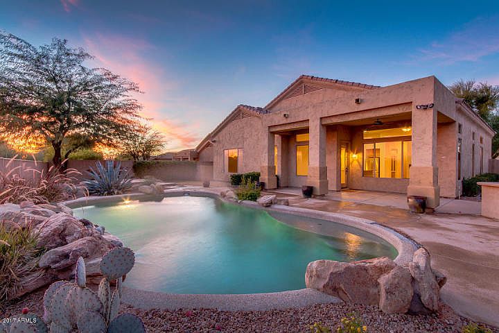 This gorgeous single-level home is ideally situated in the highly sought-after Pinnacle Reserve neighborhood in North Scottsdale. The cul-de-sac lot backs to the desert preserve, offering mountain views and complete privacy for the home and yard. This beautiful home boasts a large master bedroom with a walk-in closet, spacious secondary bedrooms, office, den and an upgraded kitchen with granite slab, stainless appliances and stone accents throughout. The back yard is an entertainer's dream with a beautiful Pebble Tec pool and rock waterfall, two large grassy play areas, large covered patio and a built-in barbecue! This prime location gives you proximity to excellent schools, freeways, shopping and plenty of entertainment.