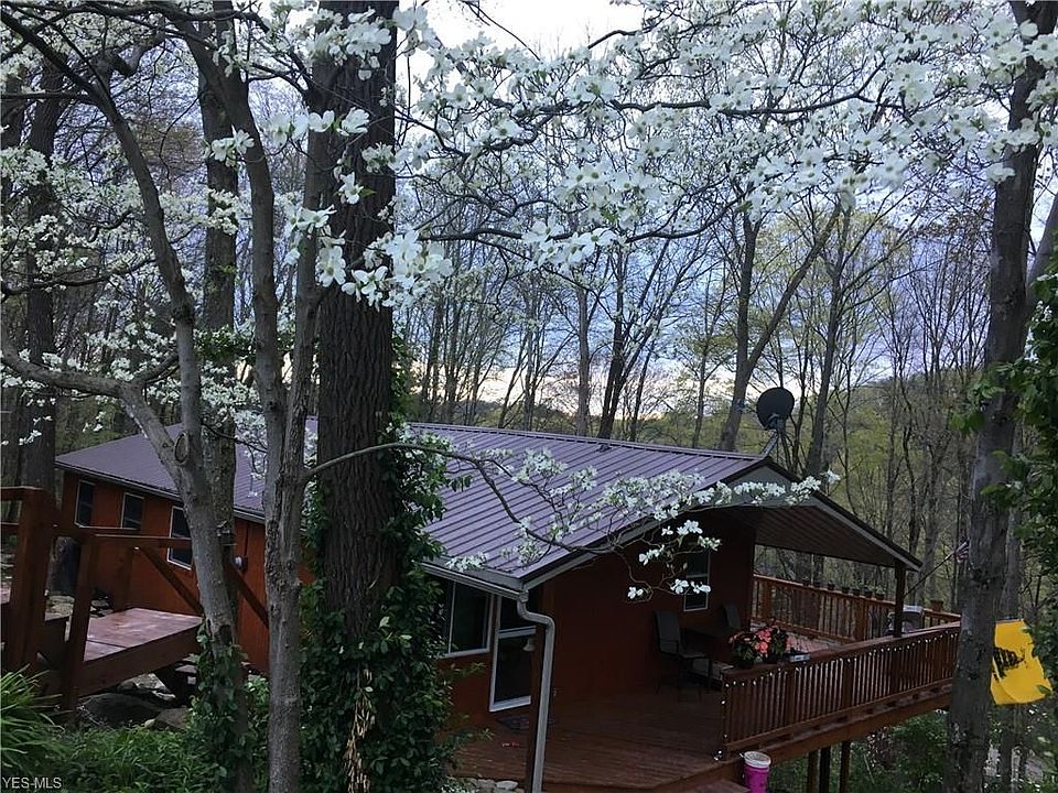 A treetop home, this peaceful retreat is the perfect getaway near Leesville Lake. The serenity is felt and seen at this home and starts with the drive down a long treed road through nature. Upon arrival this home offers a newer metal roof installed in 2014, cedar siding and an 1100 sq ft deck that wraps around the home. An entry way that allows for extra storage of life jackets, and swimming gear or fishing poles Inside a full kitchen with appliances and a large open family room with a wood burning fireplace await you. All 3 bedrooms are on the main level as well as an extra utility room and spacious bathroom with a full shower and washer/dryer.