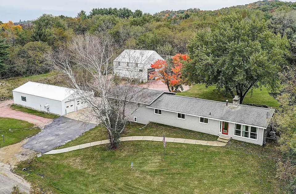 VRP $349,900-$369,900. Unbelievable find! 2 outbuildings! Just mins outside Waunakee, Middleton & Lodi! This beautifully updated country home offers a huge family rm addition & garage addition! Space for your work trucks, equipment & hobbies + a 3 car attached garage! Huge drive-thru 60x30 heated metal pole building w/new roof & 10ft door, 220 amp & heated w/an upscale exterior wood stove that can also heat the home if you'd like-LOW HEATING COSTS! Big 42x37 shed is perfect for storing all your vehicles & toys! You're not dreaming! The 4 bdrm, 2288 sq/ft home is move-in ready! Nice Master w/full bath. New siding, windows, kitchen, well pump & new addition in '04! Big unfinished basement for storage or workshop! All this nestled on a scenic country road 20 mins to Madison! Bring your horse!