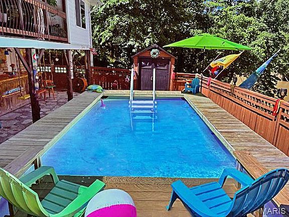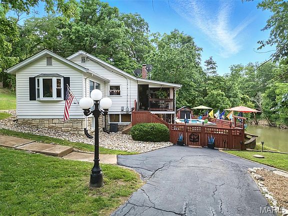 Beautifully manicured 1.67-acre waterfront property offers every amenity imaginable. Featuring pool & deck, covered lower-level patio with fun tiki bar area and fenced yard. Long driveway leads to detached garage, 20' entertainment table and fire pit area. Upper covered deck w/stunning view of waterfront & relaxing swings. Inside has been completely remodeled, showcasing wood flooring throughout. Open Floor plan incl. spacious kitchen equipped with lighted pantry, stainless steel appliances (gas range/oven) center island for more storage, shelving, dining area and new lighting. The main floor laundry has tons of storage, basket built-in shelving, lots of countertop space. Large living room boasts stone fireplace, 2 sets of built-in lighted bookshelves, cozy window seating, wood flooring, new light fixtures, view of waterfront. The 1st bedroom offers a luxurious bathroom complete with a soaking tub, built-in & lighted accessory shelving, and walk-in closet. Bedroom 2 features a bay window, large closet overlooking waterfront. Hall bath has large shower with subway tile walls, barn-door style glass doors and adult-height vanity, The Den has can lighting, desk space, and access to deck. The lower level includes a brewing room, a pellet stove, a gym, large recreation room, an impressive workshop, tons of storage and much more. Private, fun, spacious, secluded but not far from shopping and entertainment on the water.