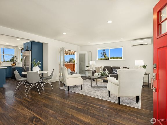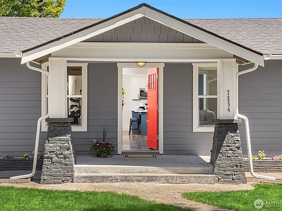 Tucked inside a private hedge-lined corner lot in Gatewood, sits this charming and updated Craftsman home. Upon entry, you are greeted with a light-filled and spacious open floor plan. The kitchen has a great layout with the huge kitchen sink window directly facing Mt. Rainier. French doors lead to the deck which also has wonderful views, and a retractable awning. The primary bedroom features an en-suite bathroom and closet with sliding barn doors. The detached 2 car garage has an EV charger installed and 240 V circuit. Outside, the yard is fully fenced and private with plenty of room to play and garden. This home was updated with care with AC, electrical, plumbing, windows, roof, and siding. Conveniently close to the bridge, I-5, and 99!