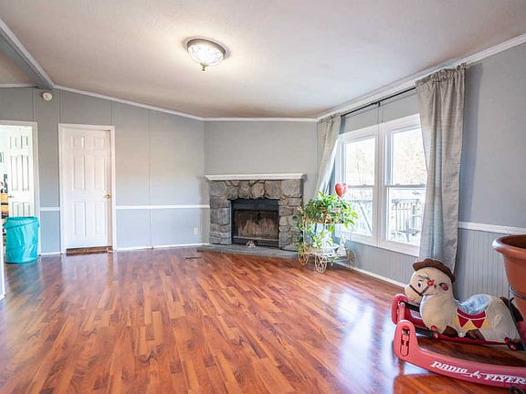 Come see this home on 5+ acres! Large, open rooms, tons of light. Water softener throughout entire home. All appliances stay including the deep freeze. Storage building. Enjoy the sunset from the covered front porch or large back deck!
