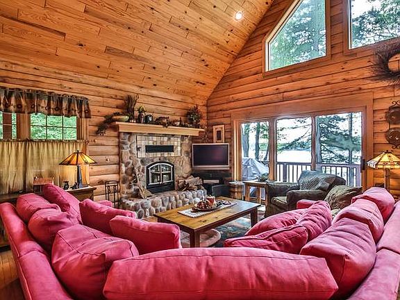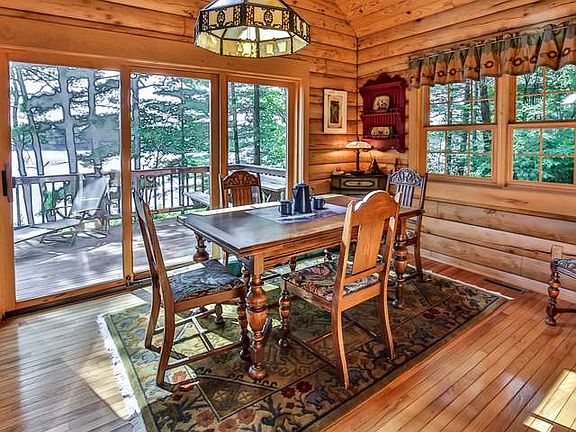 Exceptionally well done full log home featuring oak full logs, covered deck and open sun deck lakefront. The home has prime southern exposure for all day sun. Pier lake is 87 acres, 23' deep and a large percent of the land is Northern Highland State Forest. You'll love the quiet beauty this lake offers for canoe, kayak, paddleboarding and an evening of quiet fishing. The home has many extras with hardwood floors, 6 panel doors, attractive kitchen with quality cabinetry and appliances, designer baths, beamed ceilings, and a beautiful fieldstone fireplace with wood stove insert. The home has a finished lower level with patio doors to large lakeside paver patio with fire pit. Pier lake is across from the Rainbow flowage which offers 3150 acres of some of the best fishing in Northern Wisconsin. Come take a look at the exceptional quality this home offers.