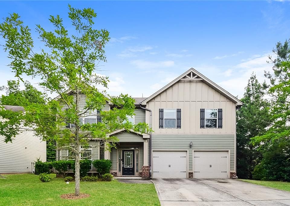 Modern Craftsman Living in Clubhouse|Swim|Tennis Community | 7554 Springbox Dr, Fairburn, GA 30213 is a modern home with a sleek design, arch doorways, coffered ceilings and ample natural light. The open floor plan connects the view to the living room with fireplace, dining area, and kitchen, making it perfect for entertaining. The kitchen features full appliance suite and plenty of storage. Multiple bedrooms and bathrooms provide space for a family or guests. The primary suite includes a walk-in closets and a luxurious en-suite bathroom with soaking garden tub. Additional amenities include a home office, laundry room, and a two-car garage. The backyard offers a covered canopy patio with ceiling fans and well-maintained lawn with full privacy wood fencing. This home combines style, functionality, and a peaceful family oriented location for comfortable living near amenities, shopping and schools. $2,500 credit for appliance allowance. Hurry, it will not last, make this gem your home. Schedule your home tour today!