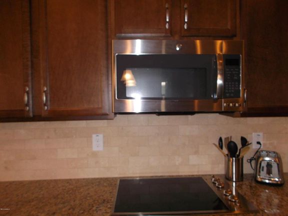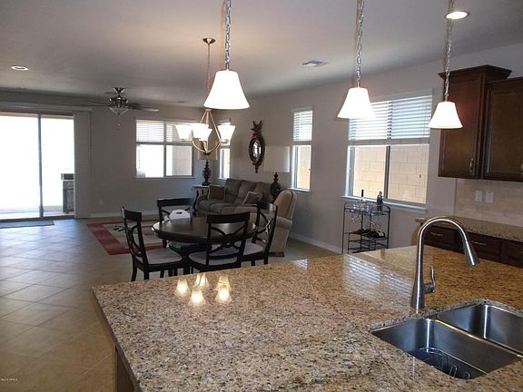 Lovely 4 bedroom, 3 bath home with N/S exposure. The inviting entry leads to the expansive greatroom and gourmet kitchen that boasts granite slab countertops, maple cabinets and GE Stainless Steel appliances. Enjoy all the upgraded features with 7.1 surround sound and cable in each room. Master bedroom features granite at the vanity with under mount sinks and tile surrounds at the bath and shower. Upgraded carpet & pad, 18x18 tile, ceiling fans and pendant lighting, wood blinds, 41/2 baseboards, 2 tone neutral paint. All lighting and door fixtures and plumbing are brushed nickel finish.Large extended covered patio is great for entertaining and there is room for a pool. Home is across from quiet greenbelt for added privacy. Owner wants sold, bring your clients to a move in ready home!