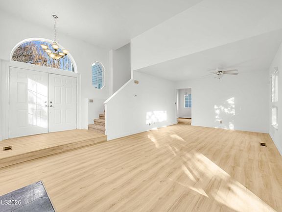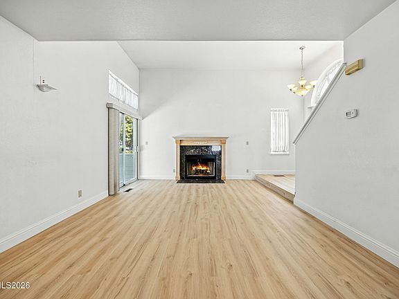 Located in the desirable and convenient Crystal Lakes neighborhood, this 4 bedroom, 2.5 bath home has been updated with brand-new vinyl flooring and plush carpet throughout, creating a fresh, move-in-ready feel. The soaring vaulted ceilings create an open, bright and airy feel throughout the main living spaces. Upstairs you will find an oversized primary bedroom offering views overlooking the shared green space and mature landscaping. The large walk-in closet features built-ins and ample space for all your storage needs. Two additional bedrooms upstairs share a full bathroom, while the main floor offers a bedroom/office with its own en-suite half bathroom and a spacious closet. Move right in and enjoy the beauty of the well-kept outdoor spaces without the hassle of yard maintenance. This unbeatable location in Reno offers a pool, tennis courts and scenic walking trails allowing you to unwind in a peaceful setting. With convenient access to shopping, dining, major freeways, Lake Tahoe, and all the attractions of "The Biggest Little City," this is an opportunity you won't want to miss!