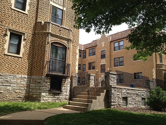 This is a first floor apartment out of 3 stories in an apartment complex. Lovely 2BR Moorlands Apt - pet friendly - Spacious, charming 1st floor six-room apartment in historic Gothic building located half block from Wydown in the heart of the Moorlands. Amenities include: new double-pane thermal windows, hardwood floors, and four stainless steel appliances (refrigerator, gas stove, dishwasher and microwave) and central AC - Pet-friendly with no breed or size restrictions, limited 2 pets. (Pet policies: Small Dogs Allowed, Cats Allowed, Large Dogs Allowed. A monthly $25 pet fee will apply per pet.) - Two coin-operated laundry rooms in basement. - Storage space included in basement. - Garage has 9 first come-first serve spots. - Large courtyard for entertaining. minimum of 650 credit score, 3.5xs rent income, no prior felonies, judgments, evictions Non Smoking Building Lessor pay water, sewer, trash Lessee gas & electric Pet friendly Parking garage - first come first serve
