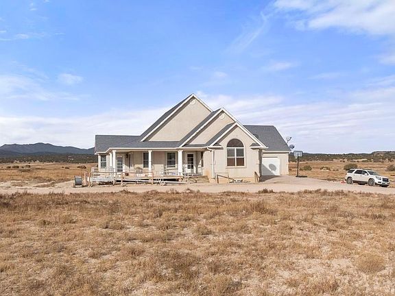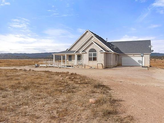 A home that was loved and lived in and ready for you to take a look and update to your liking-if your afraid of doing some work, then this is not the home for you. This horse Ranch Conveniently located about 3 miles south of 115 on County Road 123. Built in 1999 is this 1.5 story home offering 4-bedrooms, 3-bath situated on 80+/- acres. There is a total of 2935 +/- square feet split between the main floor, half story and semi-walk out basement. The main floor features 3 bedrooms and 2 baths, a large main level laundry room, and living room. The large kitchen features an island. Upstairs, enjoy the loft bedroom with a HUGE walk in closet and storage closet! The walk out basement offers a 3/4 bath in the basement, just need to finish out the way you would like/ bedrooms. Mountain views from the south to the north are spectacular and you can see for miles. A pole barn was put up approx. in 2001, with dirt floors; there is a round pen, arena and a lean to. The views this ranch has to offer and the set up for horses and more is awaiting you. 1500 gallon cistern partially underground. Two wells will be conveyed with the property at closing. Newer furnace and AC unit. If you are looking for a bit of TLC to put into a home with a peaceful setting, spectacular sunsets and rises, pastures for your livestock, room for farming equipment and more, then look no more.