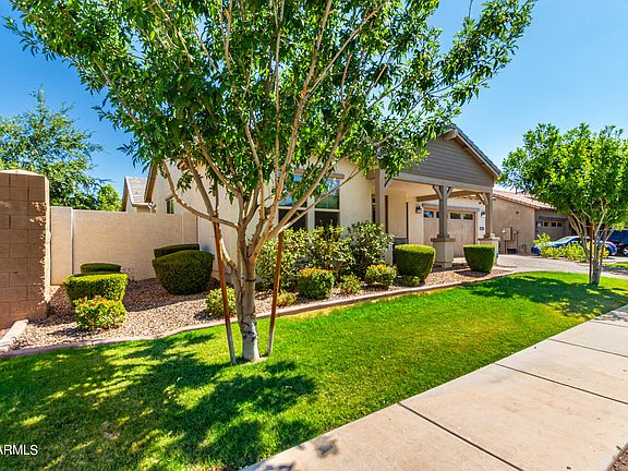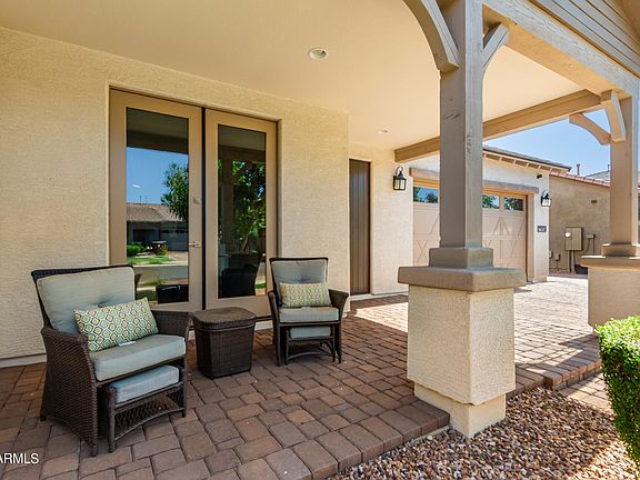 This Morrison Ranch community with its tree-lined streets is a premier housing community. This single-level home has EVERYTHING you need and more than you can imagine. This home has coffered ceilings, shutters in most rooms, 4'' baseboards, and entryway wainscotting. The front has French doors that lead to a room that could be used for a home office. Also in the front are 2 bedrooms, full bathroom AND a bonus ''Teen'' room. Design elements in the entry make this house feel like a custom build. Also included are a formal dining room, powder room and another bonus area with double doors leading out to a side patio. The enormous open-concept living area holds even the biggest sectional. The wall of glass doors & motorized window coverings complete the room. The kitchen has both a breakfast nook as well as counter-top seating. This gourmet kitchen with gas stove w/an elegant range hood, upgraded appliances, upgraded kitchen cabinetry and waterfall edge granite make this truly spectacular. Need storage? The butler pantry provides plenty. Kitchen has a seamless look with the paneled refrigerator. Filtered water system and R/O too. Master bedroom is on the opposite end of the other bedrooms and boasts a HUGE walk in closet and adjourning bath. Included are split sinks, a tiled shower and garden tub. Additionally the on demand tankless hot water unit means you'll never run out of hot water. The backyard has a second patio. Tandem 3-car garage makes this house PERFECT! You will love driving in to this gorgeous Ashton Woods community. Welcome home!