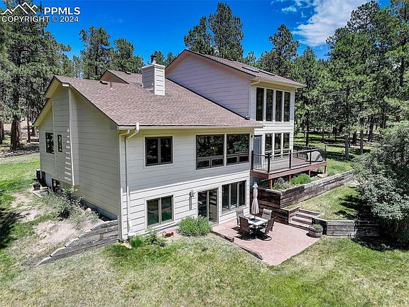 Come Home to Colorado Country Living at Its BEST! This 5 Bedroom/3 Bathroom Home & Horse Property on 4.5 Acres is an Idyllic Private Sanctuary in Desirable Black Forest, Award Winning Academy SD 20 and Nestled Amongst Tall Ponderosa Pines * This Home Exudes a Rustic Ambience All Its Own * Upon Entry an Open Great Room Greets You with Lots of Natural Light & Views of the Mountains and the Pines * Renowned Andersen Windows Installed Throughout * The Wood-Burning Stove Will keep You Cozy & Comfortable on Colorado’s Chilly Evenings …And Save on Utilities * Kitchen Offers Newer Appliances/Including a Double-Oven Cook Top Range, Breakfast Bar, Granite Counters & Tile Floors * Informal Dining Area is Open to the Kitchen & Great Room And Features a Bayed-Window/Door That Walks Out to a 28x23 Composite Deck * Deck Overlooks the Peaceful Pines, Pikes Peak AND is a Terrific Area to Watch the Sunset with a Favorite Wine In Hand * The Bonus Sunroom Drenches Your Favorite Greenery in the Summer & is a Cozy Spot for Taking in the Peaceful Scenery & Sipping Your Coffee in Any Season * The Main Level Bedrooms Each Feature Lofts with Laddered-Steps, Offering a Quiet Reading Space or Additional Storage * The Full Bathroom is Conveniently Located Just Steps from Each Bedroom * Upstairs is the Gracious Primary Retreat With it’s Own French Doors to a Balcony Overlooking the Sunroom, a Spacious Walk-In Closet, Vaulted Ceilings, a 5- Piece Bathroom as Well as a Spacious 17 X 13 Loft/Study/Library Overlooking the Living Rm * The Basement is Finished With A Huge Recreation Rm, Two Additional Bedrooms and a Near-By Full Bathroom * Zoned for Horses But Has Plenty of Space for Add’l Buildings * All New Professional Siding * It is Conveniently Located Minutes from the Heart of Black Forest, a Variety of Great Restaurants/Shops, USAF Academy, Flying Horse & I-25