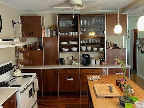 - FEATURES: Range, Refrigerator, Dishwasher, Deck, Wood Fireplace