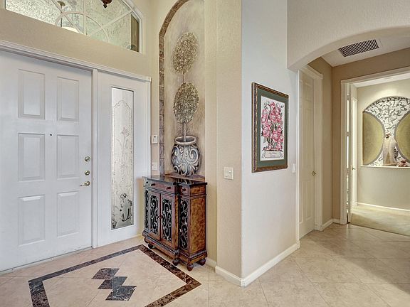 Special, spectacular and stunning this house sits off the serene Valencia Shores main lake, offering tranquil views of the fountain and clubhouse lights at night. A NEW ROOF was installed 2023, ensuring both peace of mind and modern style. The kitchen boasts a custom design, featuring all GE stainless steel appliances including an induction cooktop, creating a culinary oasis for the discerning chef. Additionally, a Generac WHOLE HOUSE GENRATOR eradicates any worries of power outages. With 2 zone AC, a jacuzzi tub, crown molding throughout & more Step outside to find a RESURFACED swimming pool. Bedroom 4 features a built-in office with desk, ideal for those who work from home or seek a quiet space for study The enlarged screened patio offers ample room or simply unwinding in the sunshine. Nestled in Valencia Shores, recognized as one of the top ten best 55+ communities in the country by Forbes Magazine, this home epitomizes resort-style living. A Social Director, Athletic Director, and full-time tennis Pro are dedicated to ensuring every resident's experience is tailored to their desires. The community amenities are unparalleled, boasting 10 Har-Tru tennis courts, 6 pickleball courts, 2 racquetball courts, and 3 bocce courts. Residents have access to a state-of-the-art gym, steam room, sauna, indoor and outdoor spas, social pool, resistance pool, and lap pools. Additionally, a social hall hosts shows, while four card rooms and an arts and crafts room cater to various interests. HOA fees cover essential services including alarm monitoring, Internet access, telephone with up to 2000 minutes per month within the continental USA, and cable access with 1 DVR capable of recording up to 5 shows simultaneously. This beautiful home comes equipped with THE GOOD LIFE and is a must-see, priced to sell.