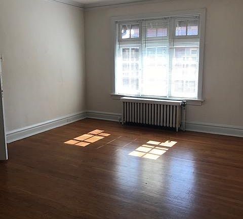 This beautiful castle like building is located in the sought out Moorelands neighborhood. This is a 2 bedroom/1 bath apartment on the top floor of the building. It has a formal dining room, and hardwood floors. There is no central air, but the owner provides 2 window unit air conditioners. Coin laundry in the basement as well as storage. Street parking is available. Owner pays for water, sewer, trash, and heat.