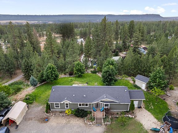 Come check out this fantastic property. The manufactured home is tucked back in the trees and sits on just under 5 acres! The property is fully fenced and gated. Kitchen has been remodeled with granite tile countertops and stainless steel appliances. This home has 3 bedrooms, 2 baths plus an office space. If you love animals and gardening, you will find four pens with three that have a frost free hydrant as well as a fenced garden with a frost free hydrant. For your storage needs, there is a 12x12' shed plus a 12x12' attached storage room. There are also fruit trees including plum, cherry and nectarine. There is a boat launch about 5 minutes away for you boat lovers! Just 20 minutes to Suncrest shopping! Don't let this opportunity slip you by!