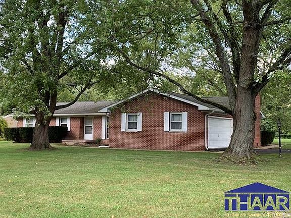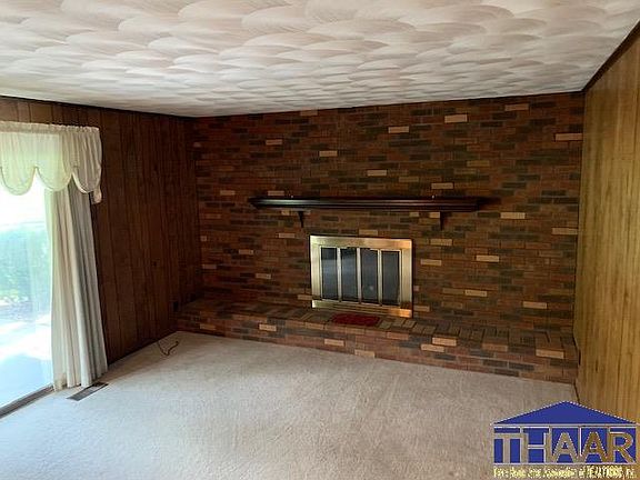 Peace and tranquility await you on this approximately 10 acre wooded property with a 3 bedroom, 2.5 bath, brick ranch home. The master bedroom has an en-suite with extra closets and storage. In addition to the two car attached garage, you'll find a two car detached garage with its own wood burning stove - perfect for winter projects. This single-owner home is waiting for its new owners to bring it into the 21st century - or simply enjoy the mid century modern appeal! Call your realtor today!