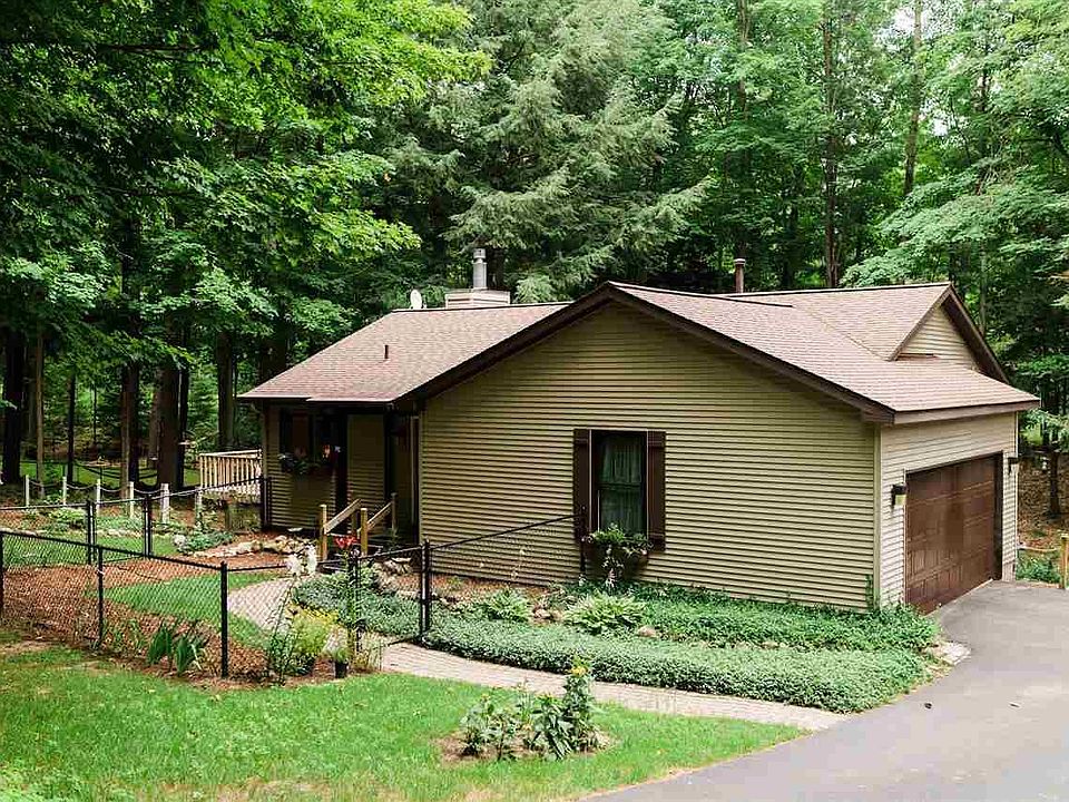 This beautiful 1 acre parcel with a well maintained home is ready for it's next owner. Located walking distance to two beach access points means you are always able to enjoy a quick trip to Lake Michigan! The trail just beyond the lot line gives you access to outdoor activities like hiking and cross country skiing as well! The main floor has the master bedroom with private master bathroom, living room with a beautiful original beach stone fireplace, kitchen, laundry room and half bath. The walk out lower level has two more bedrooms, a full bathroom, family room and storage. Some recent updates include a new master bathroom, new half bath, new water heater, new water softener, new reverse osmosis systems, gas stove, refrigerator, new front door, main level carpeting and completion of the lower level. This quaint home is a gem!