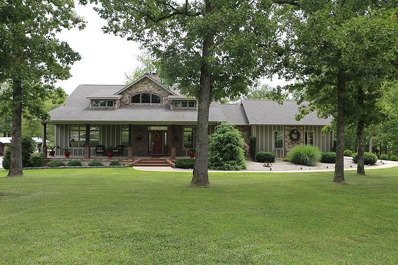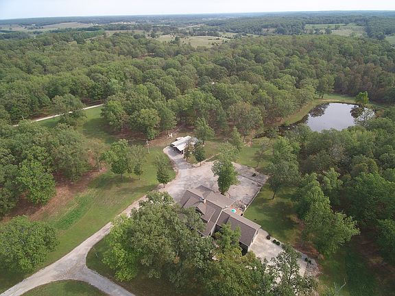 This home for sale on 21 acres in West Plains, Missouri is a breathtaking custom built home with a panoramic view of the private lake. This 3 bedroom home with second living quarters on the lower level has 3 native stone fireplaces and one is a see through double fireplace in the great room. The property boasts custom Alder cabinets, safe room, Planter shelves, arched doorways, hardwood and marble-tiled floors, and natural lighting through beautiful windows. The master bathroom features an oversized tub and double sinks. The kitchen has beautiful granite countertops, a bar with seating, an island, and overlooks two french doors allowing lots of natural lighting. The covered deck off the main level offers a magnificent view of the private lake and the covered patio off the lower level has a native stone fireplace surrounded by beautiful landscaping offering the perfect area for entertaining. The outdoor workshop is conveniently located close to both the home and lake. And the lake is stocked with fish, the pastures are lush, and the mature trees offer a stunning view in every season