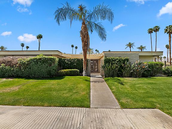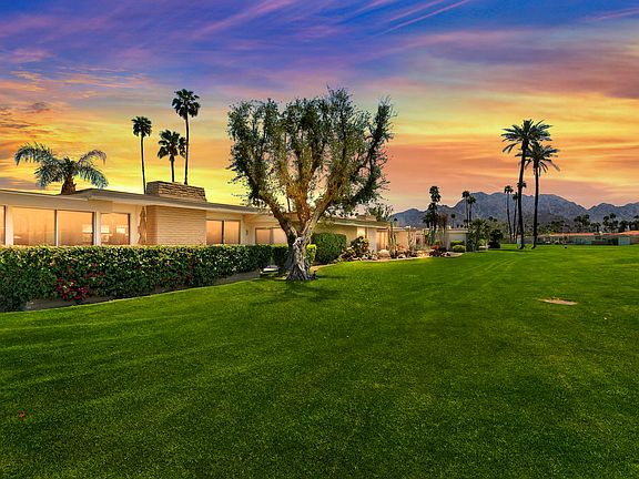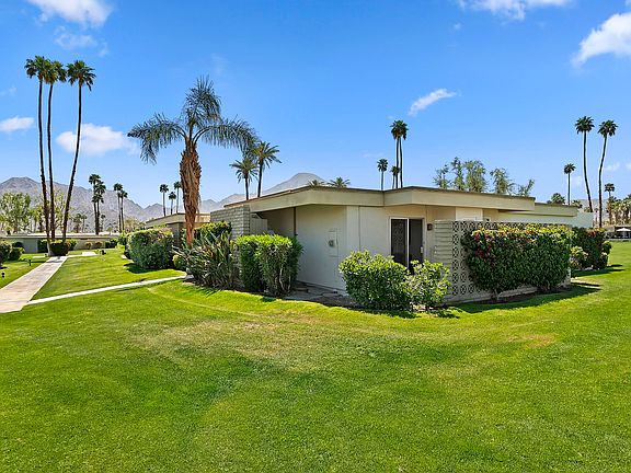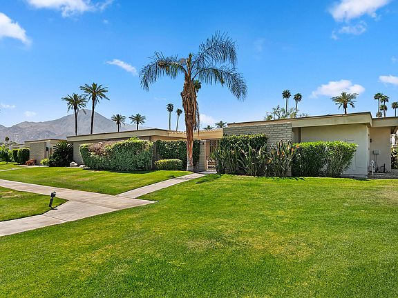 Midcentury modern condo remodeled & reimagined with quality finishes throughout. This pristine and move-in ready home has possibly the best location in Casa Dorado community. It faces south with the most breathtaking unobstructed view of the Santa Rosa Mountains and the community pool is within walking distance. The home features an open great room floor plan, and A gourmet chef's kitchen w/ sparkling white counter tops and stainless steel appliances. There are 3 bedrooms w/3 full baths. All windows have been replaced to top of the line dual pain windows. The Spacious primary bedroom enjoys the mountain views from the patio and has luxury carpet & attached bath with dual sinks and separate tub. Both additional bedrooms have their own full baths.. All baths have been tastefully updated. The Living room opens to a large back patio enjoying the unbelievable views and is perfect for desert indoor / outdoor living and entertaining. Recently installed newer furnace and AC unit . Detached garage with 2 parking spaces. Seller has paid current assessment - Casa Dorado is a low density community with 4 tennis courts , several community pools and 3 pitch and putt golf holes. There is a clubhouse where neighbors hold several gatherings a year- Sold completely turnkey furnished