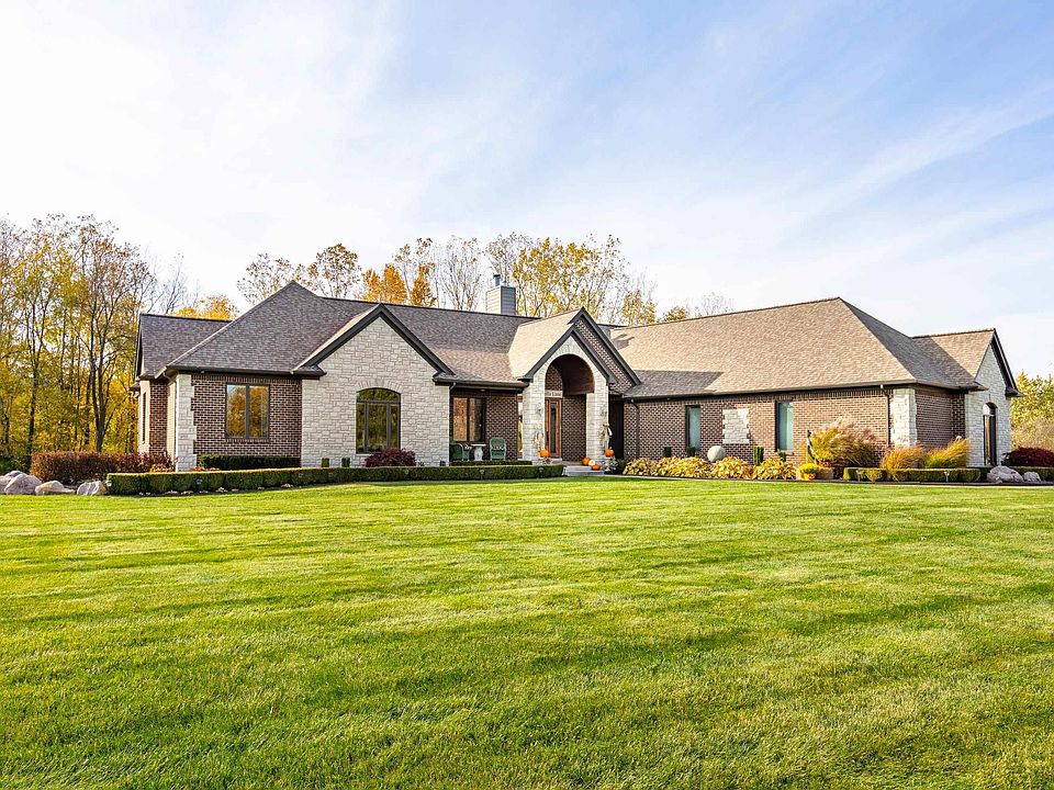 STANDOUT RANCH! Gorgeous interior design. Hardwd flrs on main, Italian tile on lower. Custom Cabs w/ triple crown in Granite gourmet Kit w/ 6 burner Cooktop, dual Ovens, Pantry & huge Island. 2-sided gas Firplce btwn Kit & Grt Rm w/ step ceiling, volume Windows & woodsy view. Generous Bedrms, 2 w/ WICs. Mastr w/ decorative shiplap wall leads into spa-style marble flr Ensuite, soaking Tub, Euro tile Shower, WIC. Host large gatherings in huge Walkout Lower Lvl w/ tons of daylight. Enjoy high-end designed Kit, Fam Rm w/ wood burner, Game Rm, Workout Rm & Flex Rm. Stamped concrete Patio & Trex Deck.